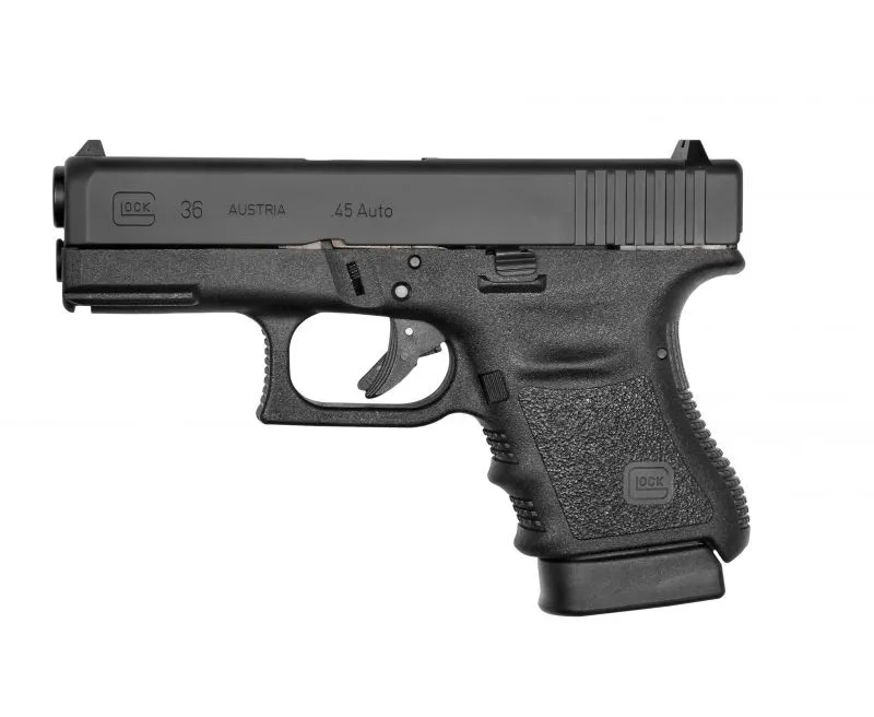 The Glock 36 packs 6 rounds of .45 Caliber AUTO stopping power in a package that fits the hands of most any user. In the SLIMLINE™ design, Glock has incorporated the use of a single stack magazine. The G36 measures only 1.13 in. in width which makes controlling recoil very simple. The G36 is easy-to-use, hard to see, and tough to face.