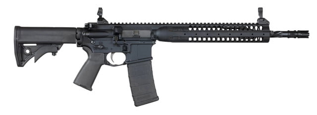 LWRC’s IC-SPR is constructed using the highest quality materials. It built on a patented self-regulating short-stroke gas piston system. The one-piece Monoforge upper design includes an integrated rail-base, while the full 12″ modular rails available on the sides and bottom of the hand guards. Its dual control fully ambidextrous lower receiver includes bolt catch and release, magazine release and fire control access from both sides. The cold hammer-forged barrel is NiCorr treated and spiral fluted, while the Nickel-boron coated bolt carrier delivers unparalleled wear resistance, corrosion resistance and permanent lubricity. The IC-A5 comes complete with Magpul sights, an ambidextrous charging handle, LWRCI adjustable compact stock, a Magpul MOE+ grip and a 4-prong flash hider.