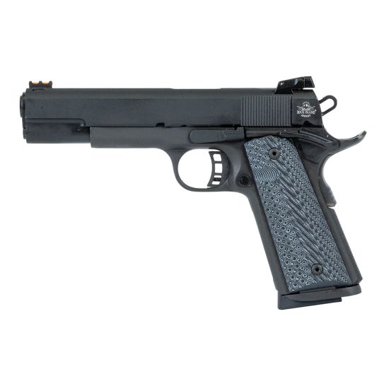 The 9mm Rock Ultra FS is a classic 70 series design, meticulously hand-fitted for superior quality. It boasts a 5″ barrel, delivering powerful impact with remarkably light recoil. Features include a skeletonized hammer and trigger with an adjustable overtravel stop, low-profile adjustable 2-dot LPA rear sight, and a high-visibility fiber optic front sight. The pistol is equipped with rugged G10 tactical grips and a durable parkerized finish. Furthermore, it accepts a drop-in 22TCM9R accessory barrel, designed to fire the factory Rock Island 22TCM9R cartridge at over 2000 fps. The TCM Rock Ultra combines the best of classic design with modern enhancements, offering a truly upgraded shooting experience.